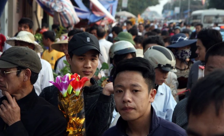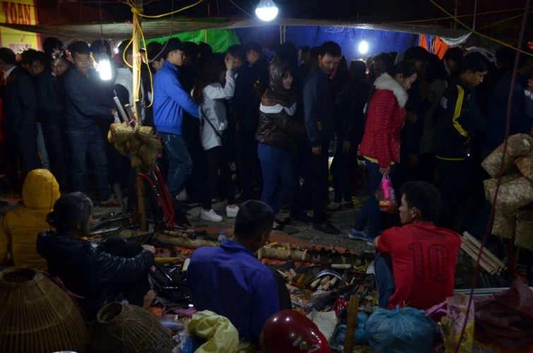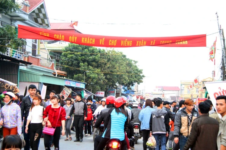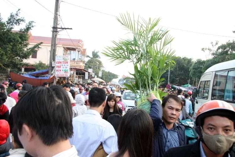 Rất đông người dân và du khách từ khắp nơi đổ về tham dự phiên chợ Viềng nổi tiếng. Ai cũng cố gắng mua được một món đồ để cầu may mắn cho cả năm.