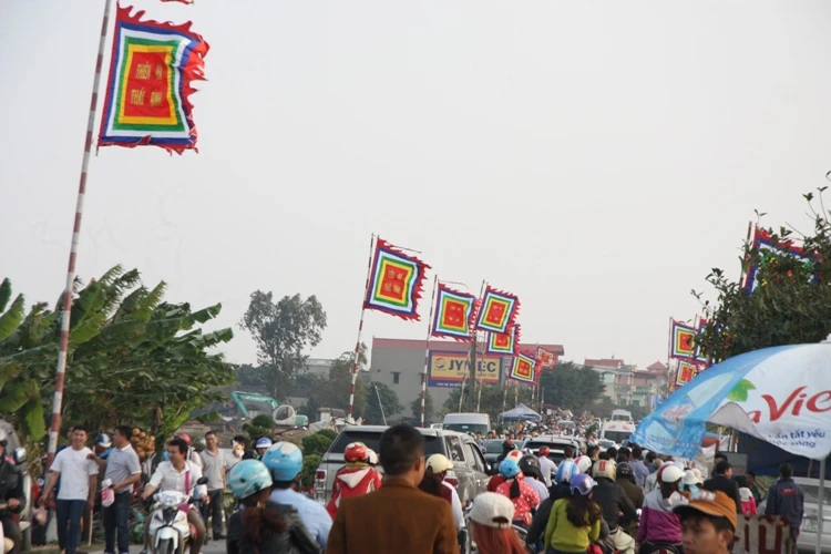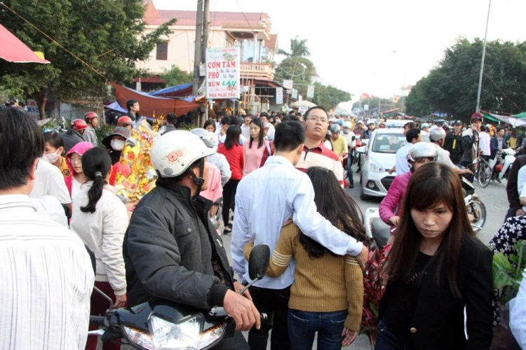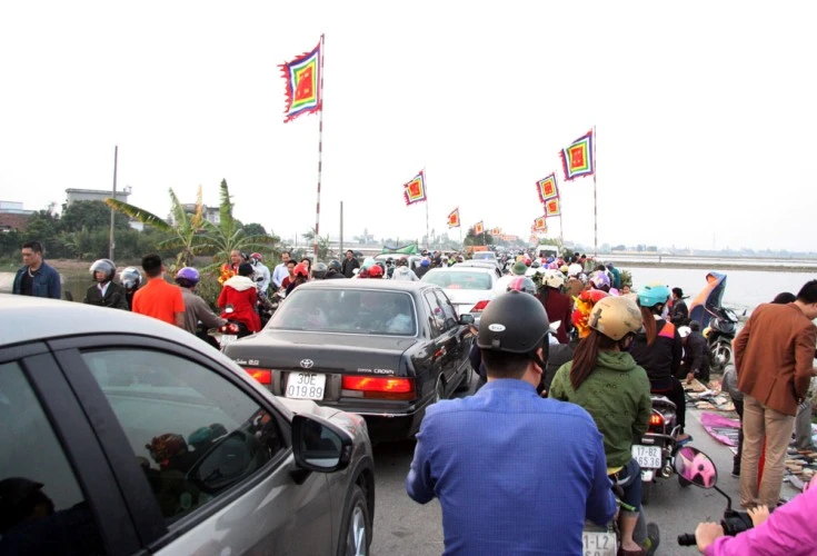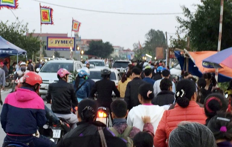Mặc dù đêm qua (14-2) chợ Viềng mới chính thức diễn ra nhưng ngay từ chiều đông đảo du khách thập phương cùng người dân địa phương đã tới từ rất sớm khiến cho các nẻo đường vào chợ bị tắc ứ.