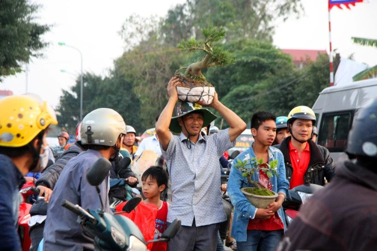 Phiên chợ mặc dù chỉ là những lẵng hoa, cây cảnh, dao, các món đồ cổ… với giá không nhiều những đã thu hút hàng vạn người về đây.