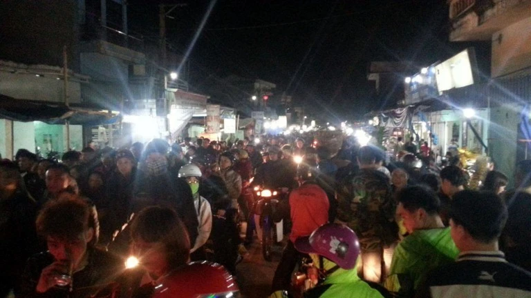 Nhiều tuyến đường đổ vào chợ Viềng đã tắc ứ ngay từ chiều qua, giao thông di chuyển chậm chạp.