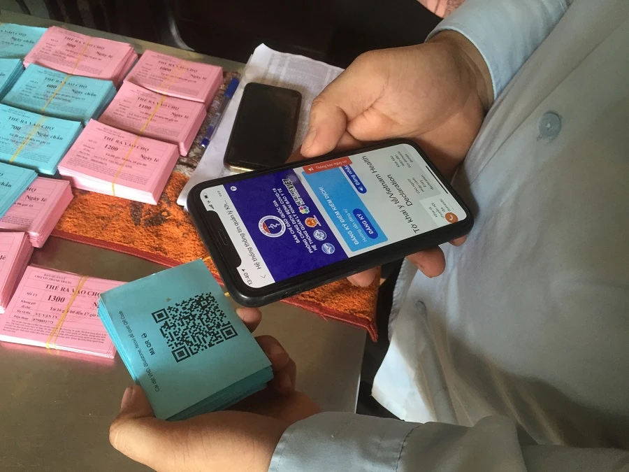 Khi người dân đến chợ theo khung giờ đã đăng kí, nhân viên chợ ghi lại số thứ tự thẻ ra vào vào sổ nhật kí. Như vậy, ban quản lý vừa điều phối được số lượng người đến chợ trong thời điểm nhất định cũng như truy vết thông tin nhanh chóng.
