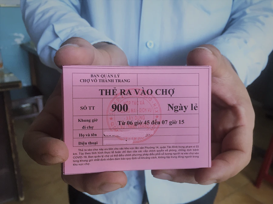 Thẻ ra vào chợ ngày lẻ có màu hồng. Ảnh: TÚ UYÊN