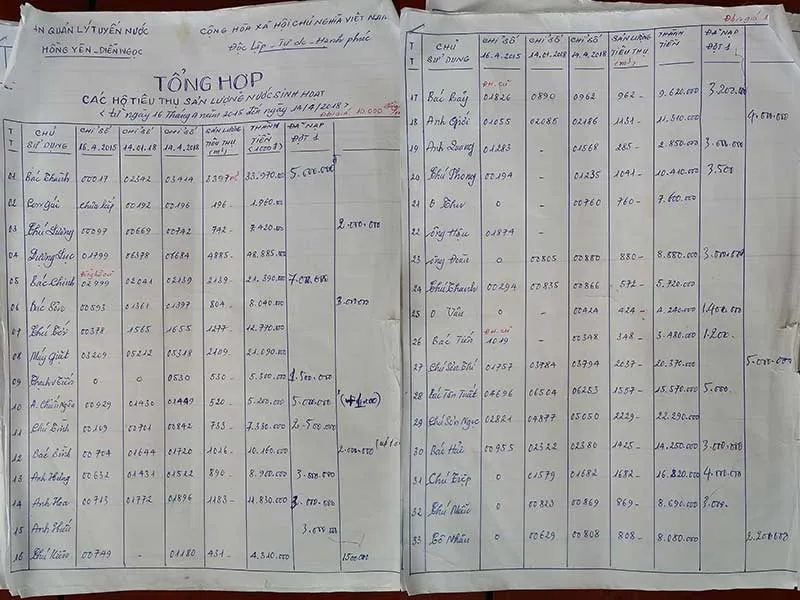 Đó chưa phải là con số tiền nước truy thu cuối cùng, bởi người thầu quản lý hệ thống nước máy xóm Hồng Yên là ông Trần Văn Hồng (48 tuổi) cho hay ông mới chỉ đưa ra con số truy thu từ năm 2015 đến nay, trong khi thời gian người dân sử dụng nước máy là từ năm 2012 đến nay.