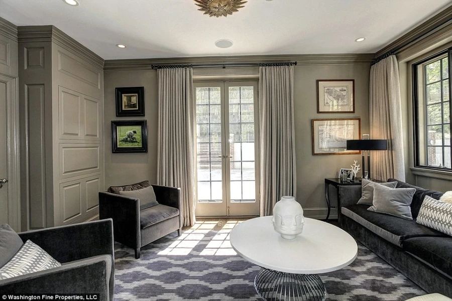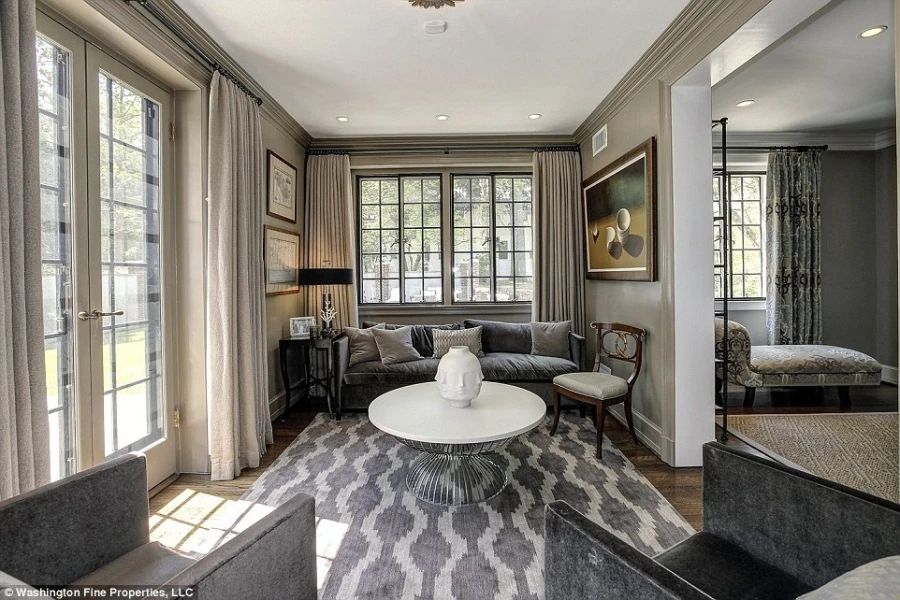 Căn phòng khách sáng sủa chiếm phần lớn diện tích tầng trệt và tuy mang hơi hướng cổ điển nhưng vẫn có vẻ hiện đại hơn so với khu dinh thự ở Nhà Trắng.