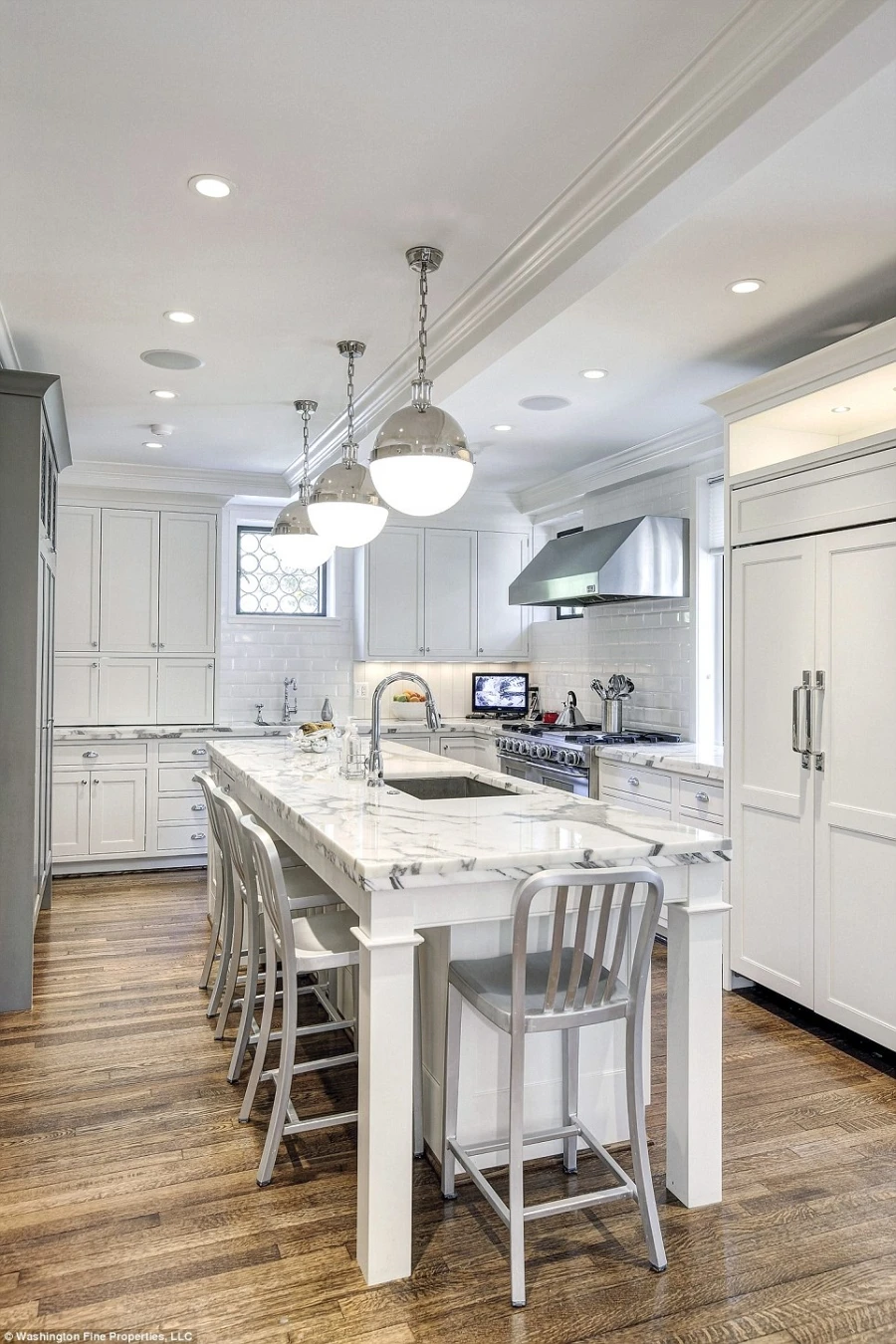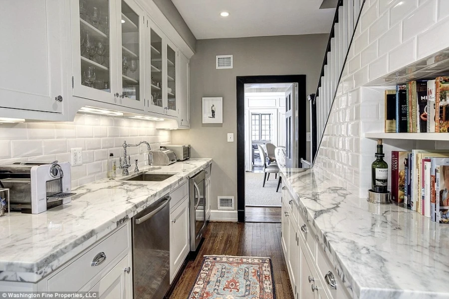 Căn bếp có một quầy bar lớn ở giữa phòng, nơi các thành viên có thể dùng bữa sáng nhưng có lẽ không phải là chỗ dành cho những đầu bếp chuyên nghiệp của Nhà Trắng.