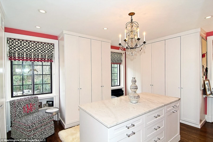 Phòng thay đồ với tủ quần áo rộng rãi, vô cùng tiện dụng và phù hợp với phong cách thời trang của bà Michelle.