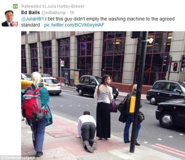 Sáng ngày hôm nay (11/4), tất cả những người tham gia giao thông trên 1 tuyến đường phố tại London đã không khỏi choáng váng và kinh ngạc khi chứng kiến cảnh tượng 1 người phụ nữ thản nhiên dắt bộ 1 người đàn ông "đi bằng tứ chi".