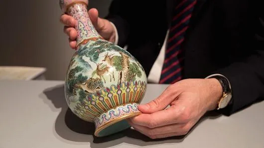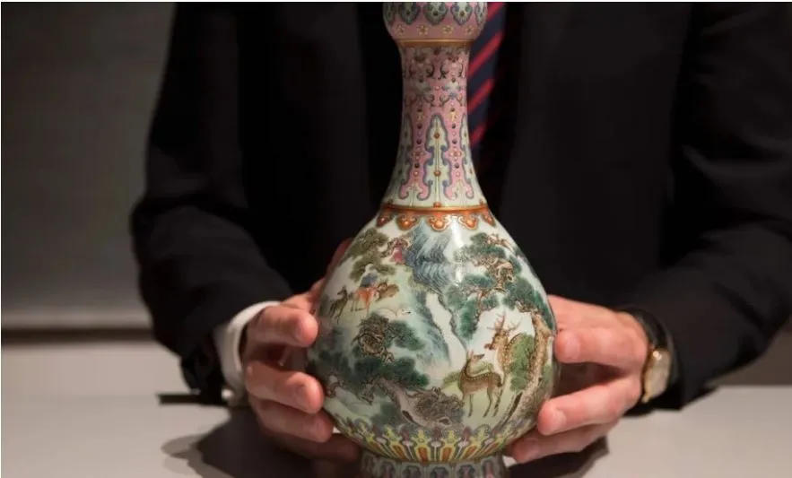 Các chuyên gia tại Trung tâm đấu giá Sotheby cho biết chiếc bình được chạm khắc tinh tế và có từ thời nhà Thanh, triều đại vua Càn Long trị vì. Chiếc bình gốm ban đầu được mang ra đấu giá chỉ với giá mong đợi là 500.000 euro, nhưng cuối cùng nó đã được trả với giá cao gấp 30 lần.