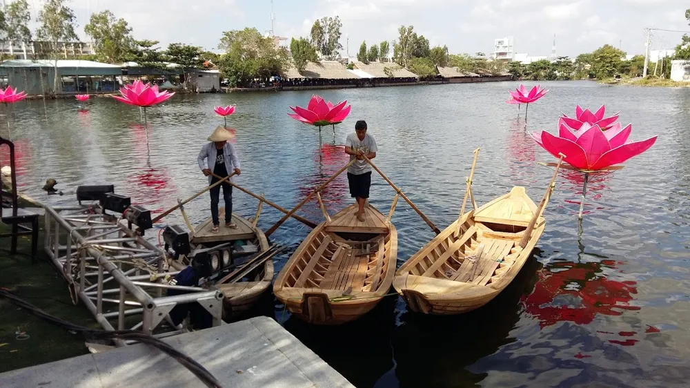 Phục dựng nếp sinh hoạt xưa (xuồng chèo) của vùng sông nước Cà Mau để phục vụ đám gả.