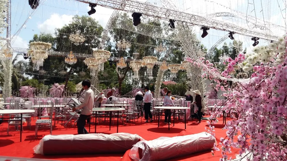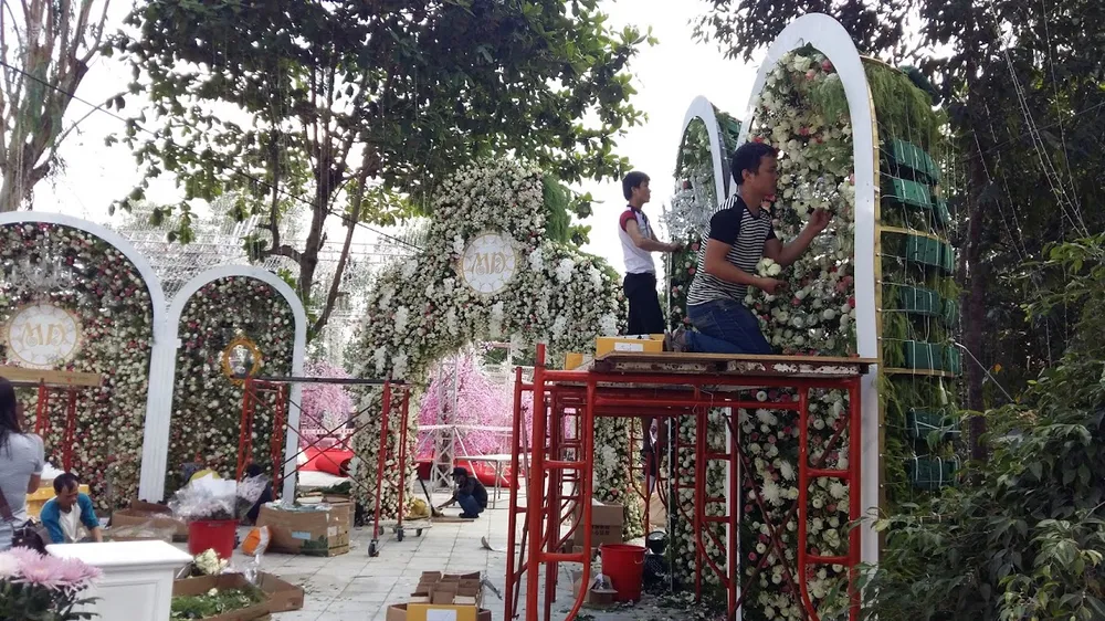 Phải tốn đến hai xe container hoa tươi để kết trang trí tại đám gả con gái đại gia Nguyễn Việt Cường.