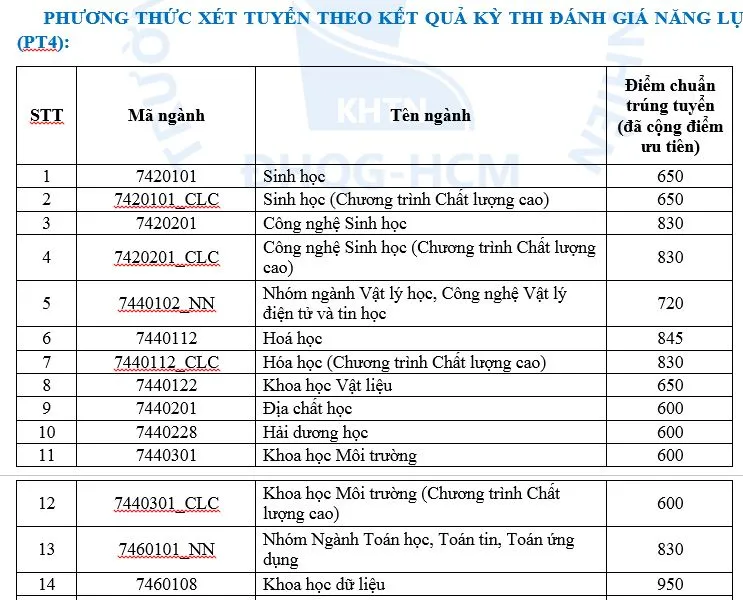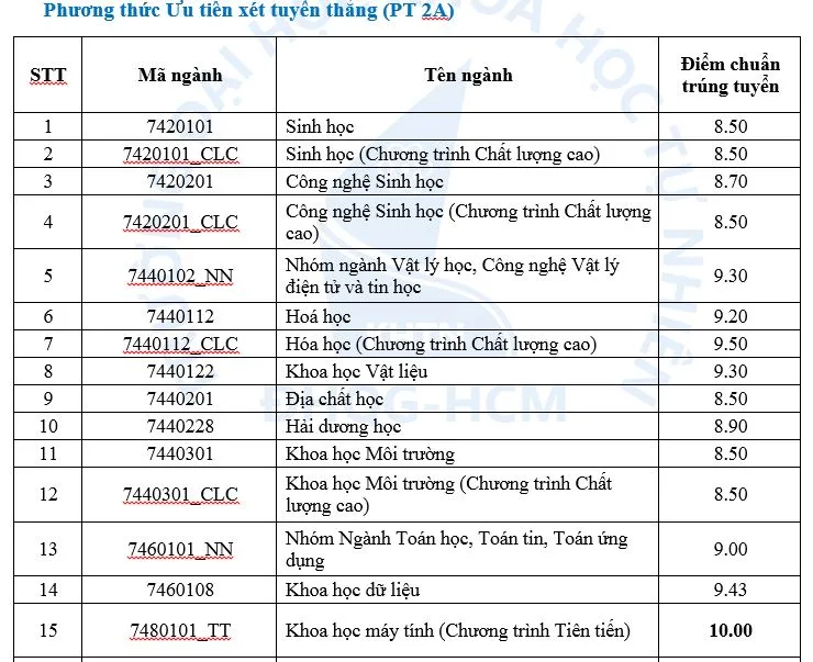 Chiều 29-6, Trường ĐH Khoa học tự nhiên (ĐH Quốc gia TP.HCM) đã công bố điểm chuẩn xét tuyển sớm vào ĐH chính quy năm 2023 ở ba phương thức.