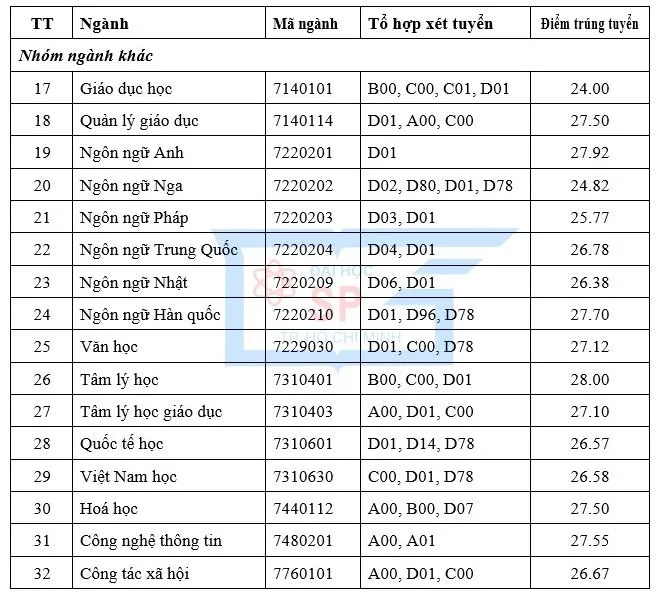 Theo đó, điểm chuẩn năm nay khá cao ở tất cả các ngành thuộc nhóm đào tạo giáo viên lẫn các ngành khác.