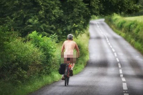 Anh chàng đạp xe tận hưởng không khí sáng sớm khi trên người không có một mảnh vải (nguồn: Mirror)