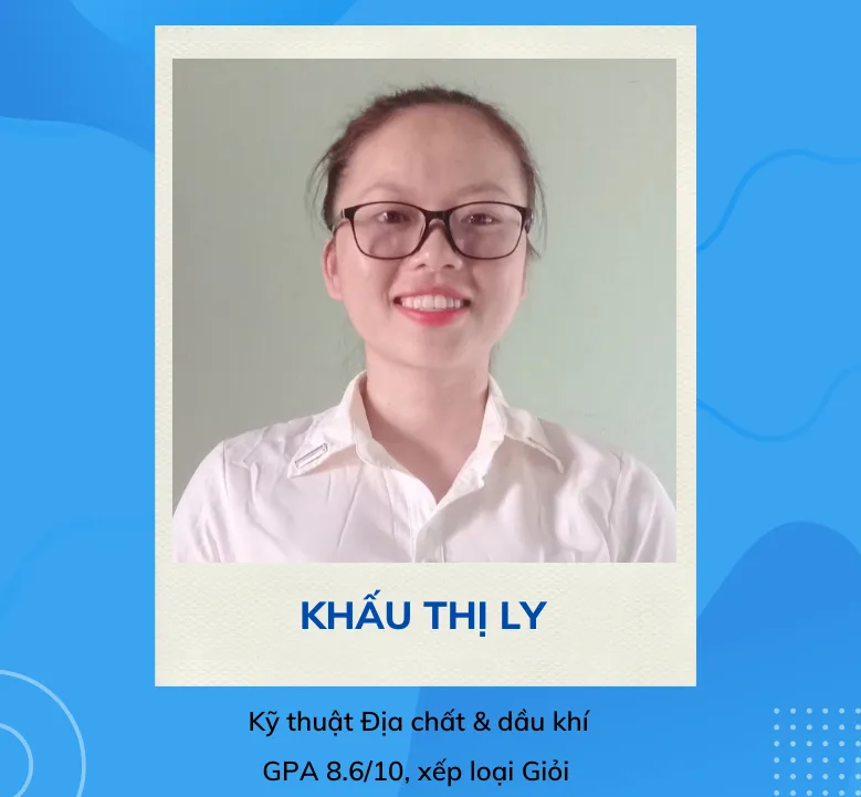 Thứ hai, Khấu Thị Ly (khoa kỹ thuật địa chất và dầu khí), có điểm tốt nghiệp 8,6/10, đạt loại giỏi. Em đạt học bổng khuyến khích học tập 7/8 học kỳ, là sinh viên giỏi toàn diện năm 2019 - 2020, 2021 – 2022 và sinh viên xuất sắc toàn diện năm 2020 – 2021.