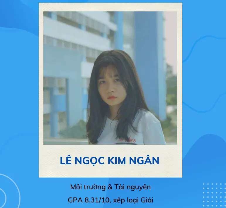Thứ năm là Lê Ngọc Kim Ngân (khoa môi trường tài nguyên) tốt nghiệp với điểm GPA 8,31/10, đạt loại giỏi.