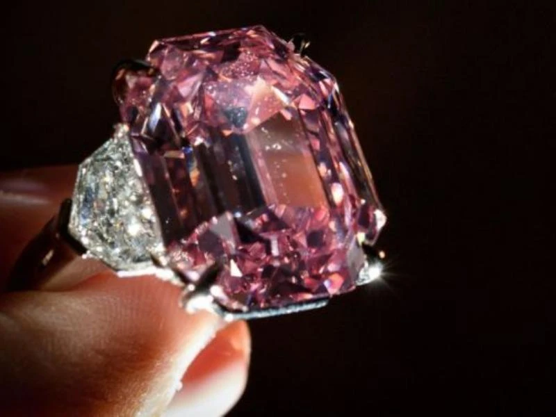 Cận cảnh viên kim cương hồng có giá 1.160 tỉ đồng. Ảnh: AFP