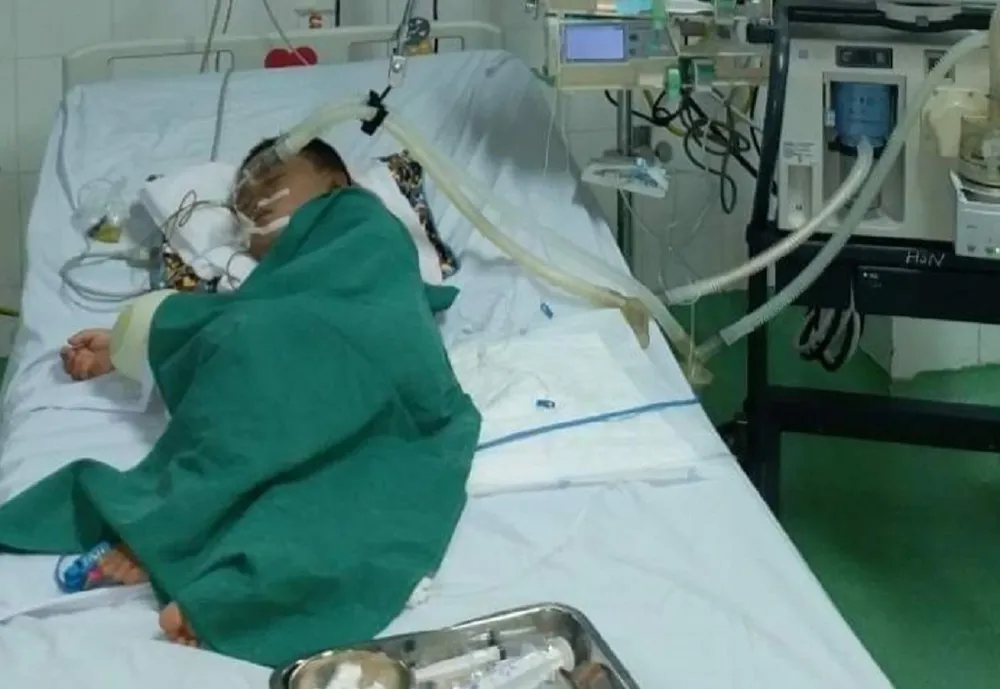 Bé được đặt nội khí quản thở máy, chống sốc và lọc máu cấp cứu. Qua một tuần điều trị tích cực, tình trạng tuy đã cải thiện nhưng vẫn còn nặng, bé vẫn phải thở bằng máy.
