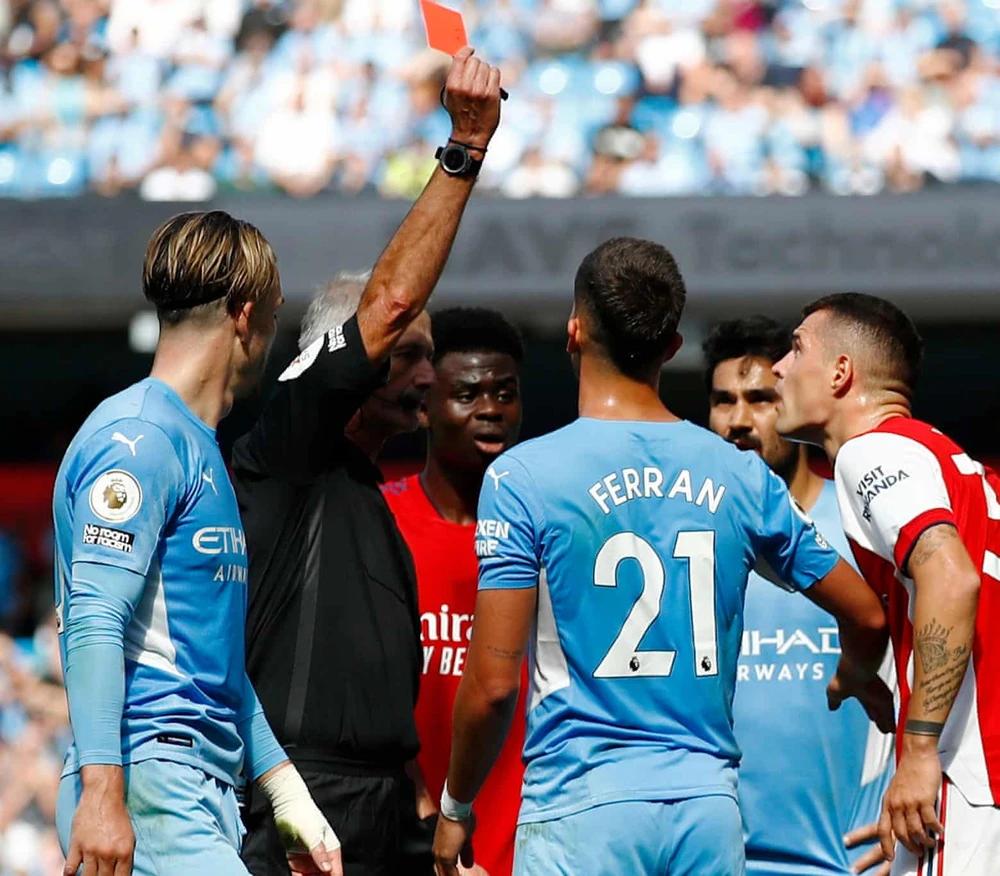 Chưa tìm được bàn gỡ, Arsenal càng gặp khó khi Granit Xhaka có pha vào bóng ác ý với hậu vệ Cancelo, pha bóng này khiến tiền vệ của Arsenal nhận thẻ đỏ trực tiếp rời sân.