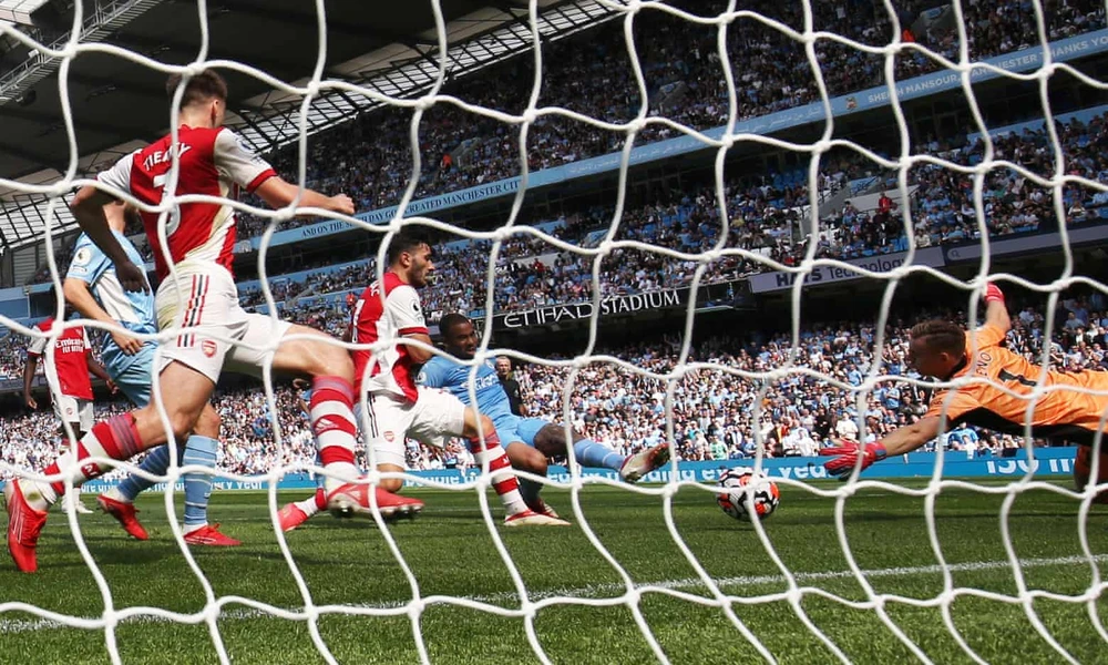 Dù chơi lép vế và nhận 2 bàn thua sớm, nhưng Arsenal cũng có được cơ hội để ghi bàn vào lưới Man. City. Phút 20, thủ môn Ederson của đội chủ nhà có pha chơi bóng cẩu thả khi chuyền bóng vào trúng chân Smith Rowe, may cho Man. City bóng bật chân số 10 của Arsenal đi hết đường biên ngang.