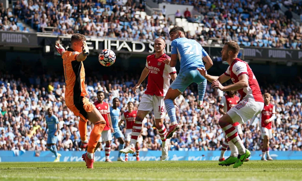 Đến phút thứ 10, Gundogan suýt có cơ hội lập cú đúp, khi Cancelo thực hiện pha tạt bóng cho Gundogan đánh đầu, lần này thủ môn Leno đã bay người cứu thua cho Arsenal.