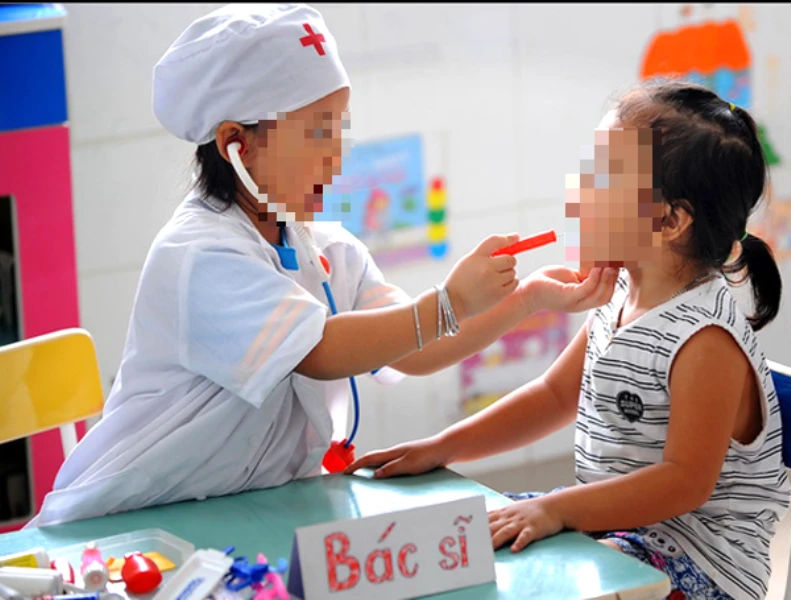 Theo lời kể của gia đình, hai em ngồi chơi chung trò chơi đóng giả bác sĩ - bệnh nhân và phân chia thuốc uống như trên.
