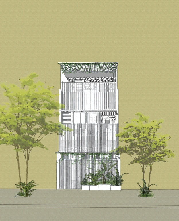 Một kiến trúc ẩn mình giữa thiên nhiên ít ỏi trong lòng đô thị mới từ khía cạnh cảm thụ thị giác.