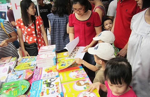 Trẻ em say mê chọn sách tại Hội sách Quốc tế Việt Nam lần thứ V tại Hà Nội vào giữa tháng 9 vừa qua. Ảnh: Tư liệu