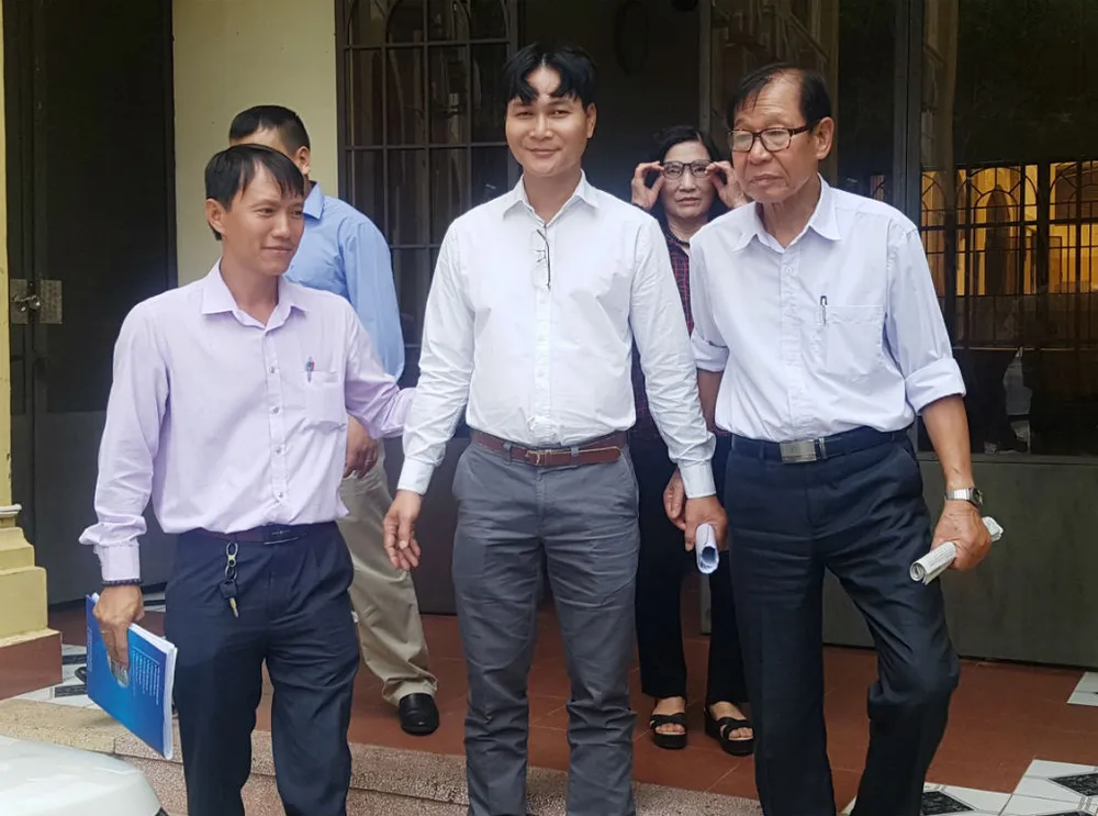 Ông Vinh (giữa) tại trụ sở TAND tỉnh Đồng Nai. Ảnh: VH
