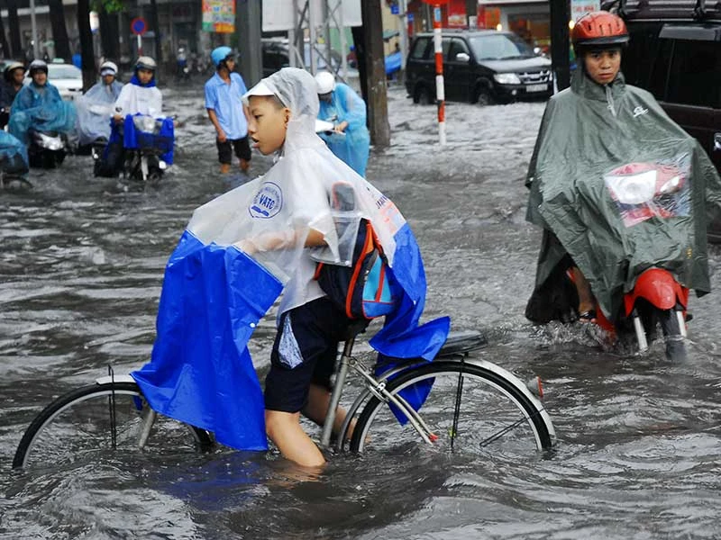 Một điểm ngập ở TP.HCM sau cơn mưa. Ảnh: HTD