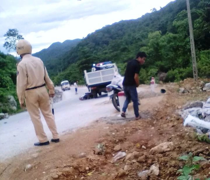 Sáng 8-7, công an và UBND xã Châu Kim (huyện Quế Phong, Nghệ An) cho biết trên địa bàn vừa xảy ra vụ tai nạn giao thông giữa xe máy và xe công vụ của CSGT.