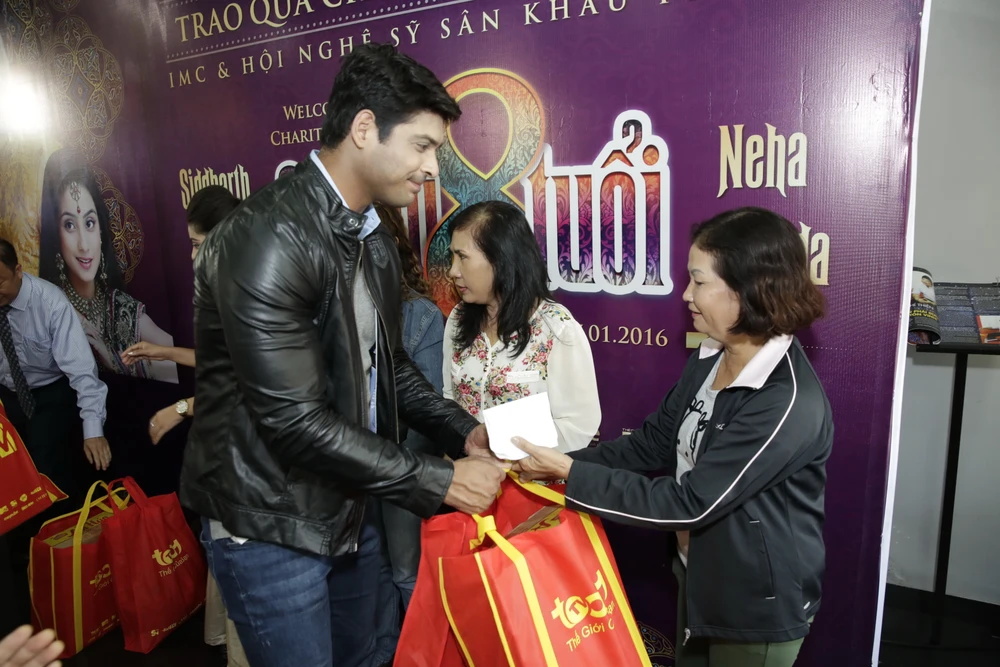 Nam diễn viên Siddharth Shukla trao quà cho nghệ sĩ nghèo TP.HCM vào chiều 7-1 - Ảnh: BTC cung cấp