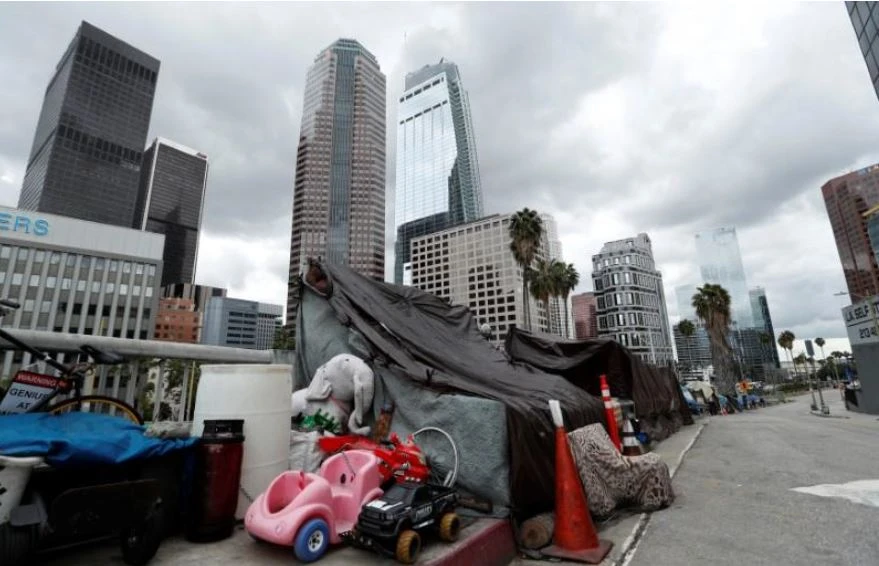 Một khu trại dành cho người vô gia cư ở TP Los Angeles, bang California (Mỹ) ngày 20-3, sau khi Thống đốc Gavin Newsom yêu cầu 40 triệu dân toàn bang ở trong nhà. Ảnh: REUTERS