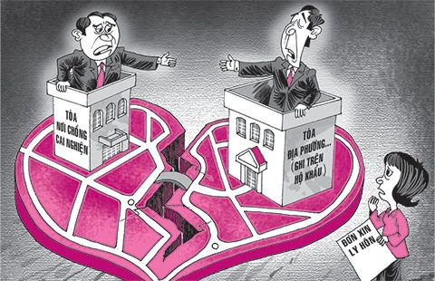 Tháng 7-2014, chị T. nộp đơn xin ly hôn chồng tại TAND huyện Phú Giáo. Sau khi yêu cầu chị nộp đơn khởi kiện bổ sung cùng hộ khẩu gia đình, TAND huyện Phú Giáo đã chuyển đơn của chị đến TAND quận Tân Bình để “giải quyết theo thẩm quyền”.
