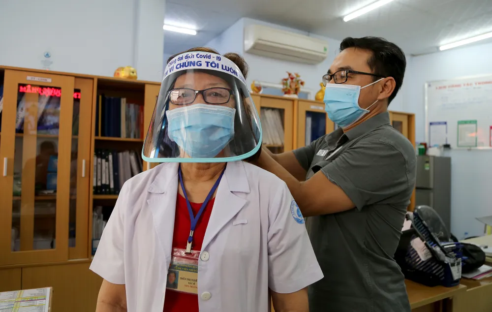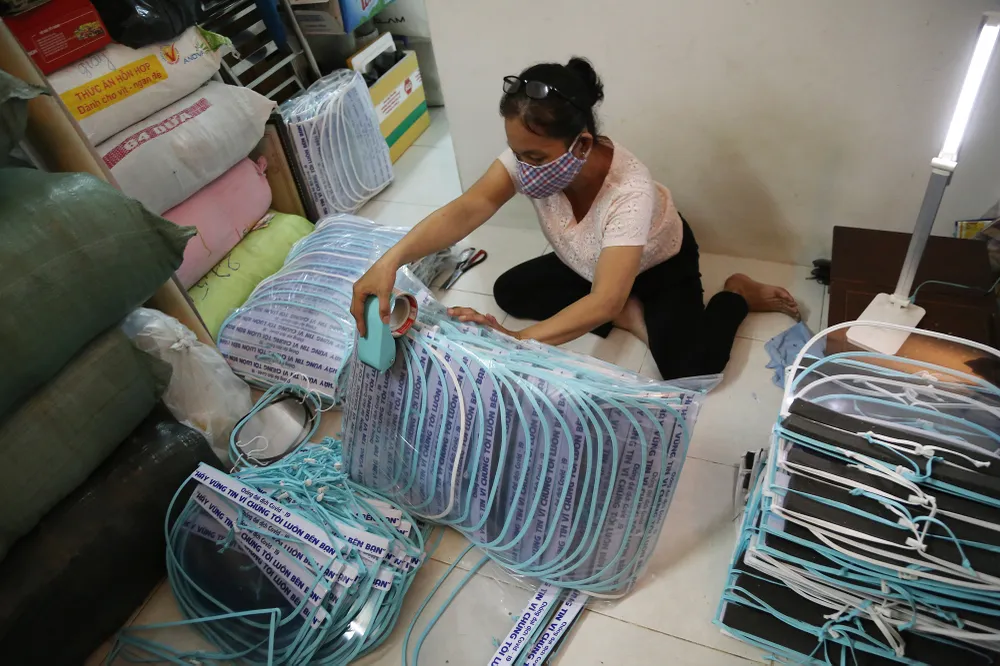 Chị Quách Mỹ Linh (42 tuổi, quận Bình Thạnh), người đưa ra sáng kiến làm những chiếc mặt nạ, cho biết chị tham khảo các mẫu mã mặt nạ chống dịch trên các trang nước ngoài, sẵn kinh nghiệm bán mặt nạ chống dịch của bản thân, chị đã mua các nguyên liệu để tạo ra một sản phẩm hoàn chỉnh nhất.