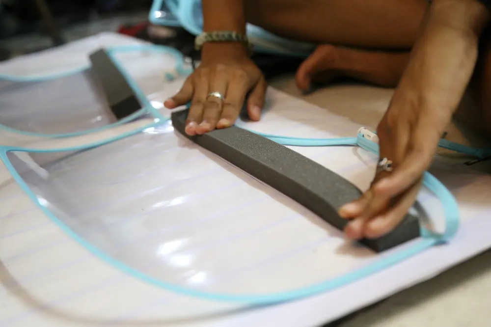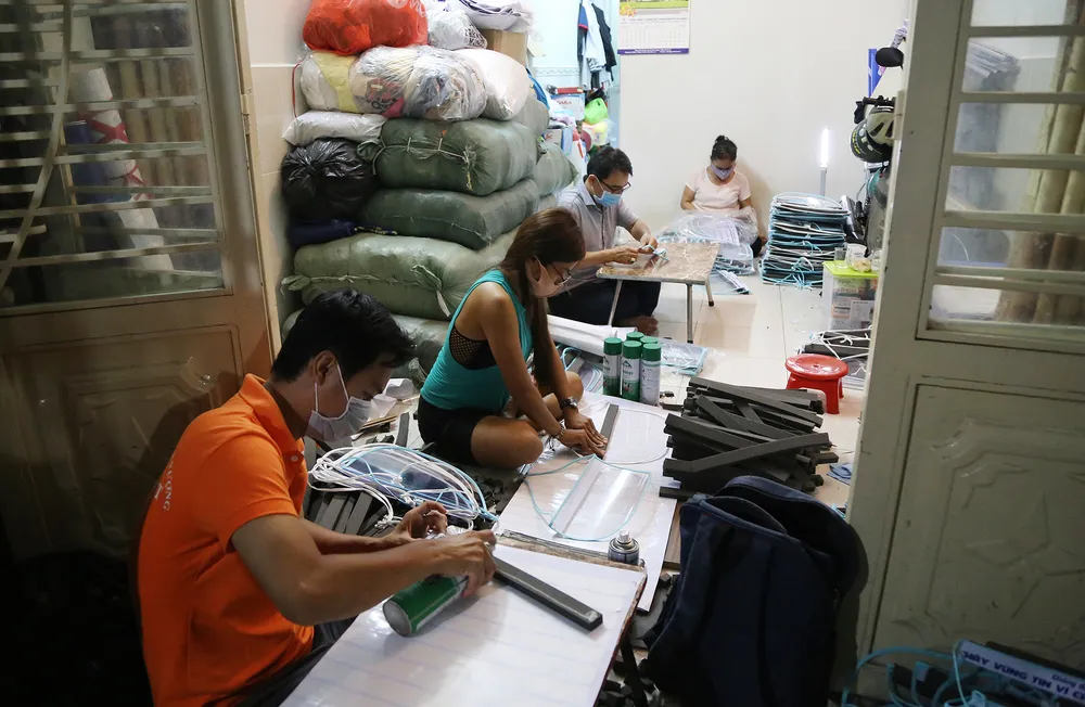 Nhóm sử dụng phòng khách trong nhà của một thành viên trong nhóm làm nơi sản xuất mặt nạ.