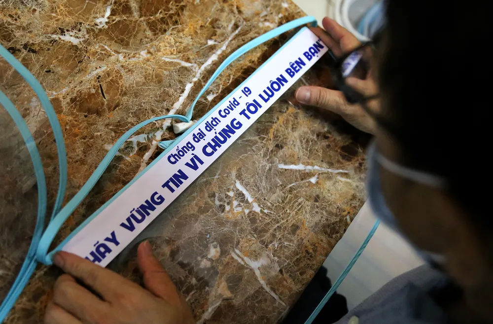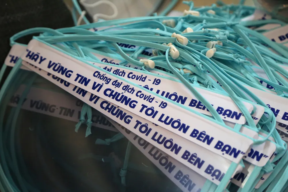 Về thông điệp "Chống đại dịch COVID-19. Hãy vững tin vì chúng tôi luôn bên bạn" dán trên mỗi chiếc mũ, anh Trần Ngọc Ân (quận Bình Thạnh) - trưởng nhóm thiện nguyện chia sẻ đây là mong muốn của cả nhóm khi bắt tay vào làm những chiếc mũ chống giọt bắn để gửi tặng các y, bác sĩ tại các bệnh viện. Nhóm hy vọng khi các bác sĩ đọc được những dòng chữ trên mặt nạ sẽ cảm thấy vững tin hơn khi làm việc, trong khi các bệnh nhân nhìn thấy lại cảm thấy an tâm hơn khi có các bác sĩ luôn đồng hành.