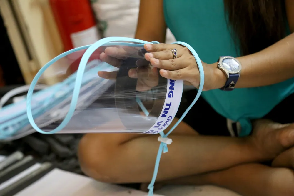 Tối muộn 8-4, tại một con hẻm trên đường Nguyễn Công Hoan (quận Phú Nhuận, TP.HCM), các tình nguyện viên nhóm thiện nguyện Xuân Yêu Thương vẫn đang tất bật chuẩn bị những chiếc mặt nạ ngăn giọt bắn phòng COVID-19 để kịp gửi tặng các y, bác sĩ vào sáng mai.