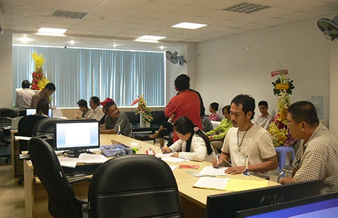 Khách hàng đang giao dịch tại Văn phòng công chứng Đầm Sen (quận 11, TP.HCM). Ảnh: L.TRINH