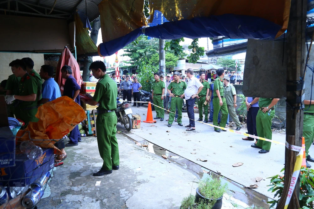 Cơ quan chức năng khám nghiệm hiện trường vào sáng 27-5.