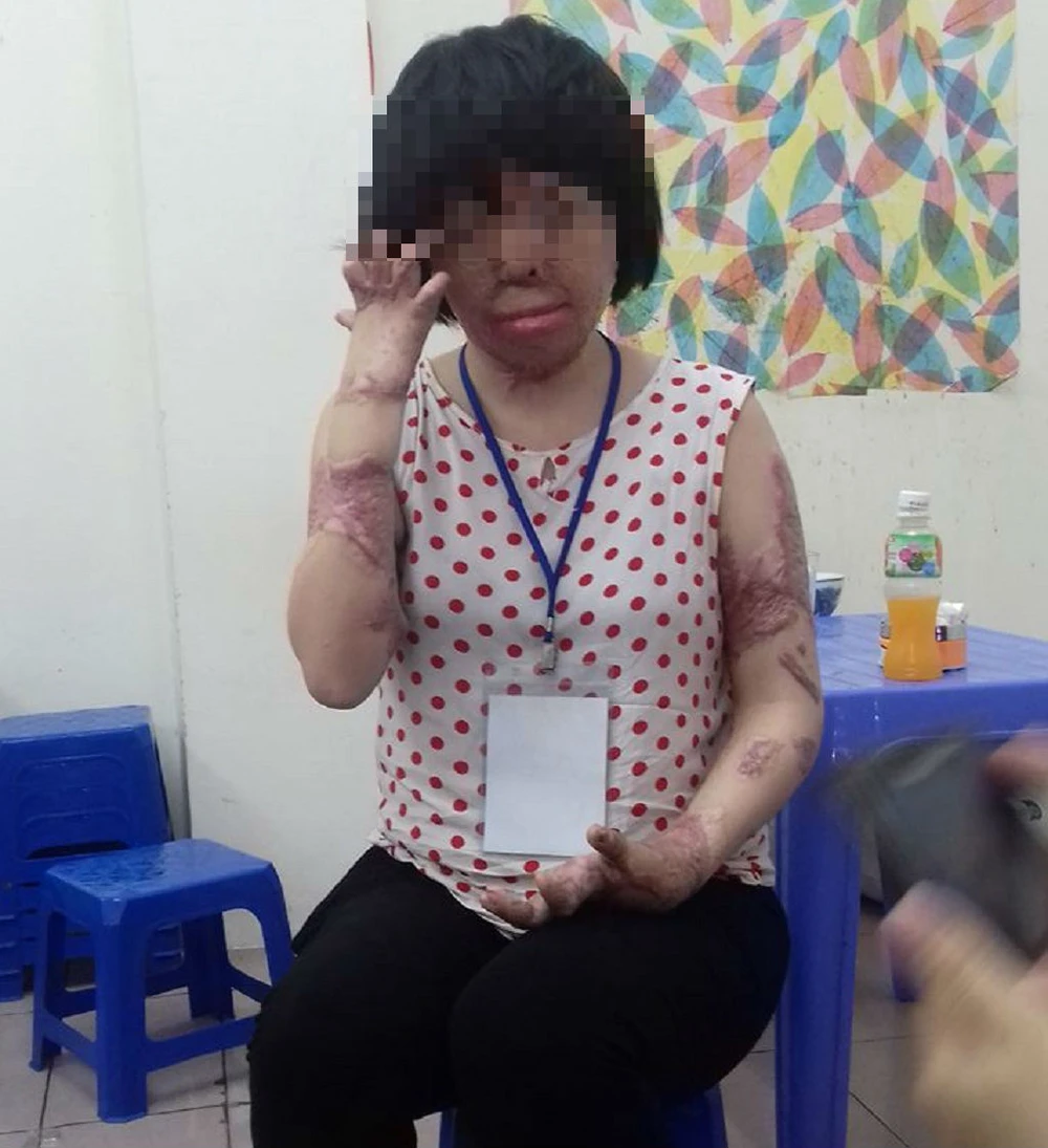 Chị D. với những vết thương nặng nề do tội ác của Thành để lại.