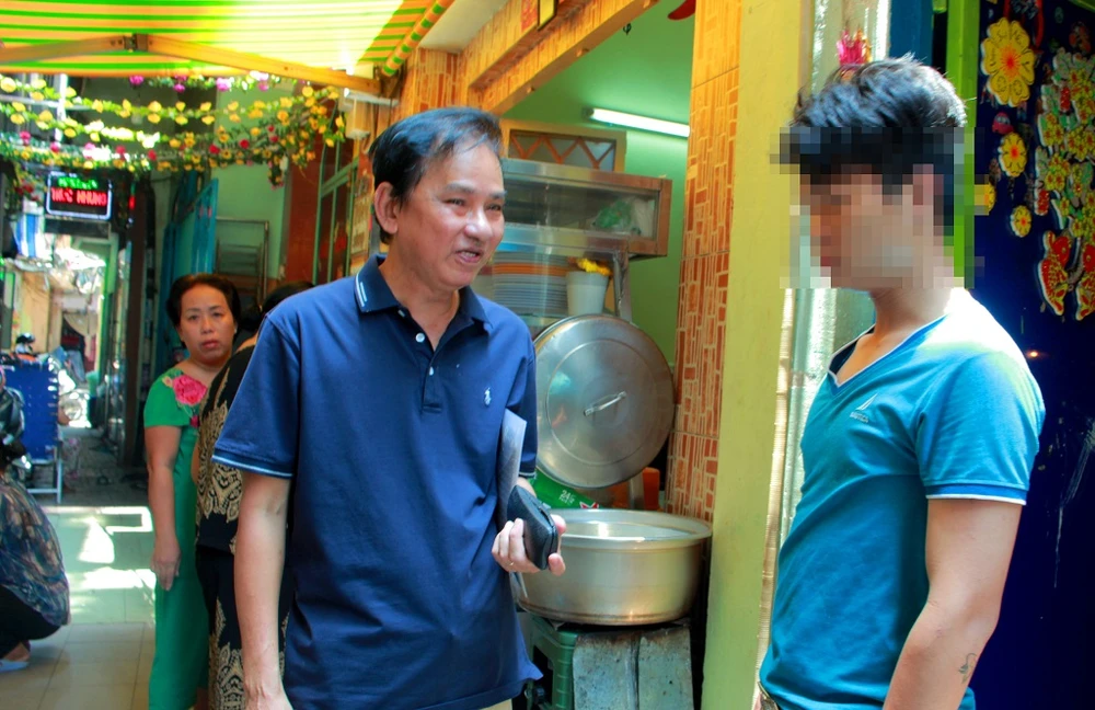 Bí thư khu phố 1, phường Phạm Ngũ Lão Trần Văn Thanh hỏi thăm Đ., một thanh niên từng cướp giật ở phố Tây hiện đã có việc làm. Ảnh: L. THOA
