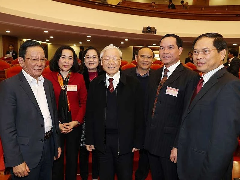 Tổng Bí thư, Chủ tịch nước Nguyễn Phú Trọng với các đại biểu dự hội nghị. Ảnh: TTXVN