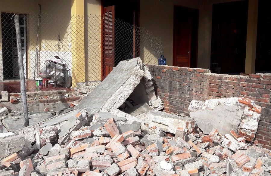 Khoảng 9 giờ sáng 1-8, vợ chồng ông Nguyễn Văn Kỷ (55 tuổi, trú xã Thọ Thành) tham gia tháo dỡ bờ tường cũ của trụ sở cũ Phòng giao dịch Ngân hàng NN&PTNT Chi nhánh Thọ Yên (xã Thọ Thành).