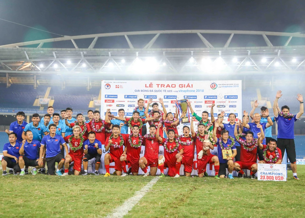 Việt Nam giành chức vô địch giải U-23 Cúp Vinaphone trên sân Mỹ Đình. ẢNH: HUY PHẠM