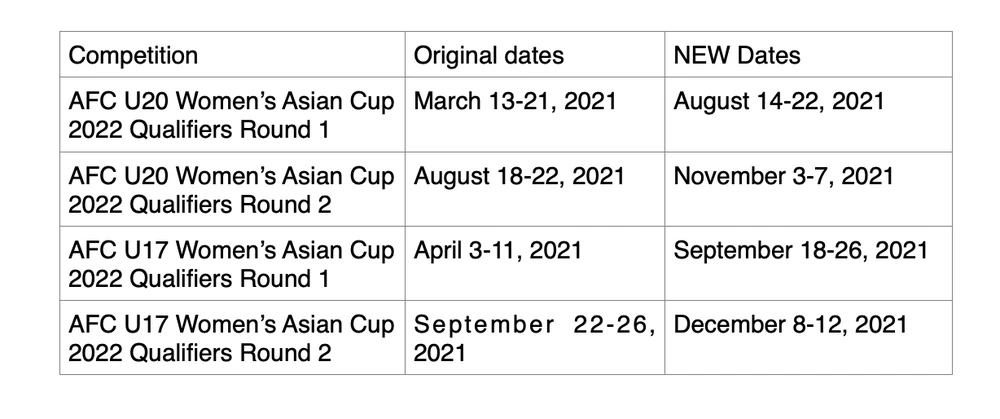 Lịch hoãn vòng loại bóng đá trẻ nữ châu Á. Ảnh: AFC