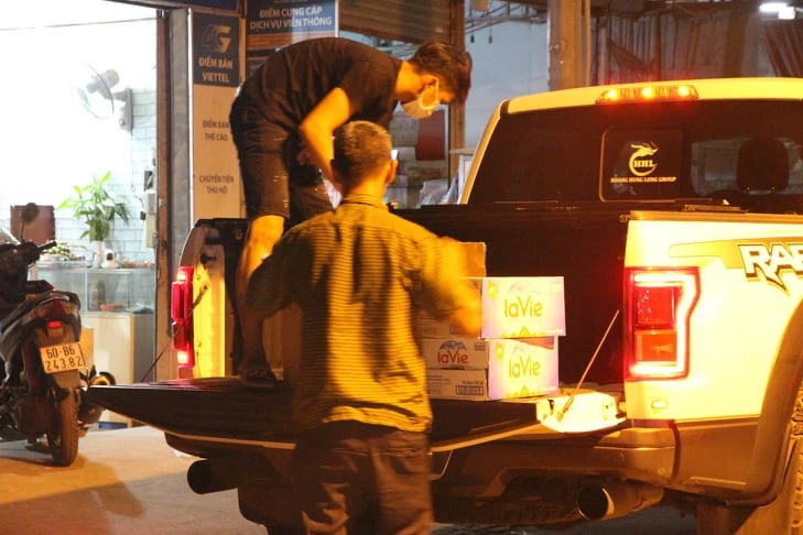 Nói là làm, anh Phương đi về nhà, lái ô tô chở nhiều thùng nước uống, nước rửa tay sát khuẩn, khẩu trang đến chốt tặng. Anh Phương cho biết, tặng để anh em làm nhiệm có động lực hoàn thành tốt nhiệm vụ.