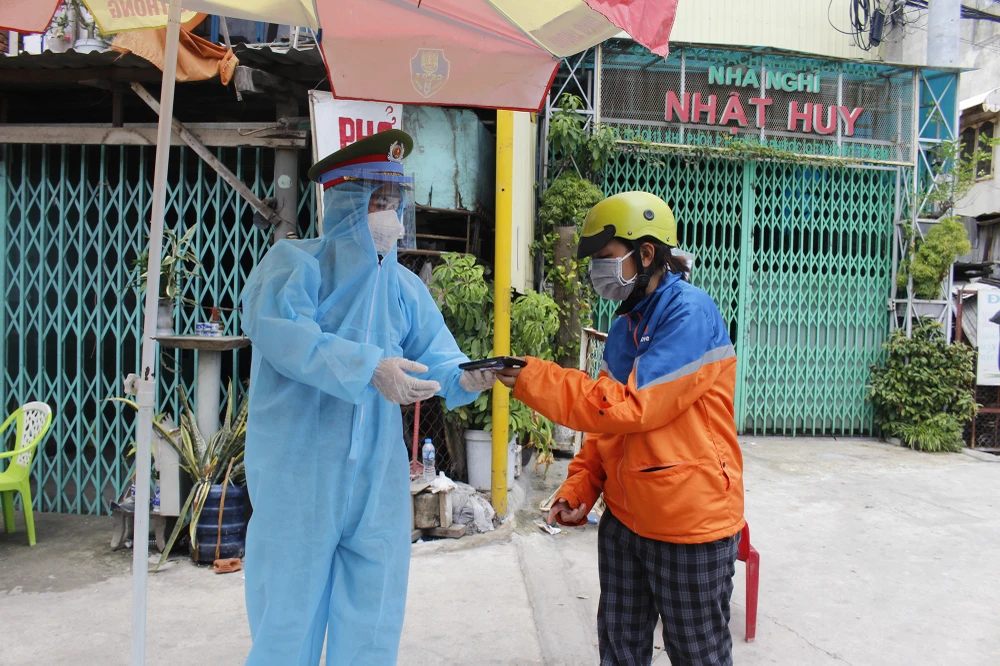 Người dân được yêu cầu phải cung cấp thông tin di chuyển trước khi rời đi.