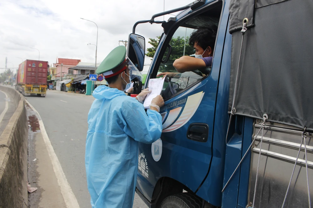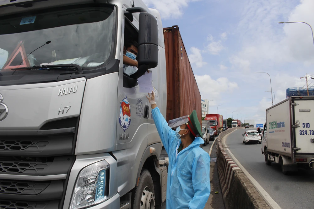 Kiểm ra giấy xét nghiệm của tài xế di chuyển vào TP.HCM.