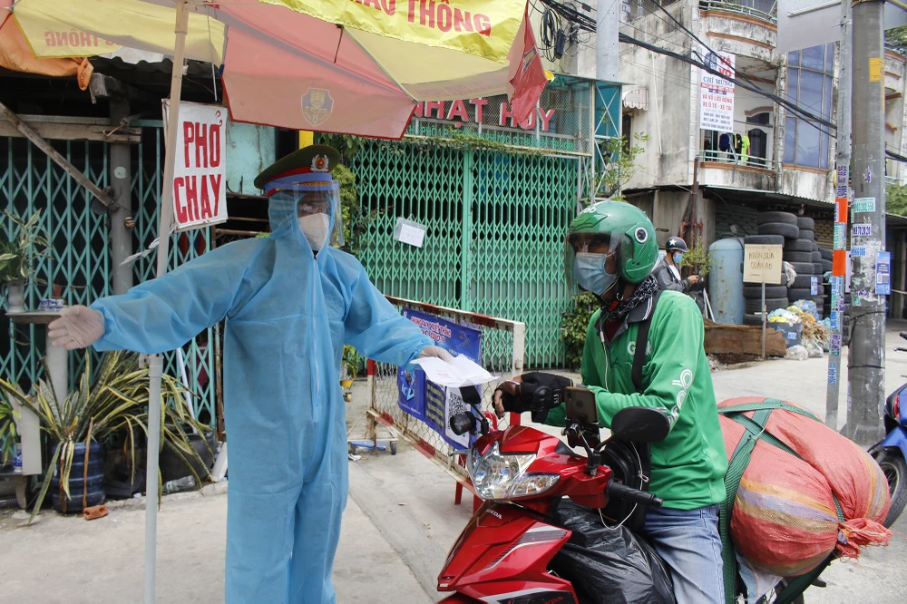 Từ 0 giờ ngày 9-7, TP.HCM đã lập lai 12 chốt kiểm soát dịch tại các cửa ngõ ra vào thành phố. Tuy nhiên, lượng phương tiện lớn khiến các chốt này luôn trong tình trạng đông đúc.