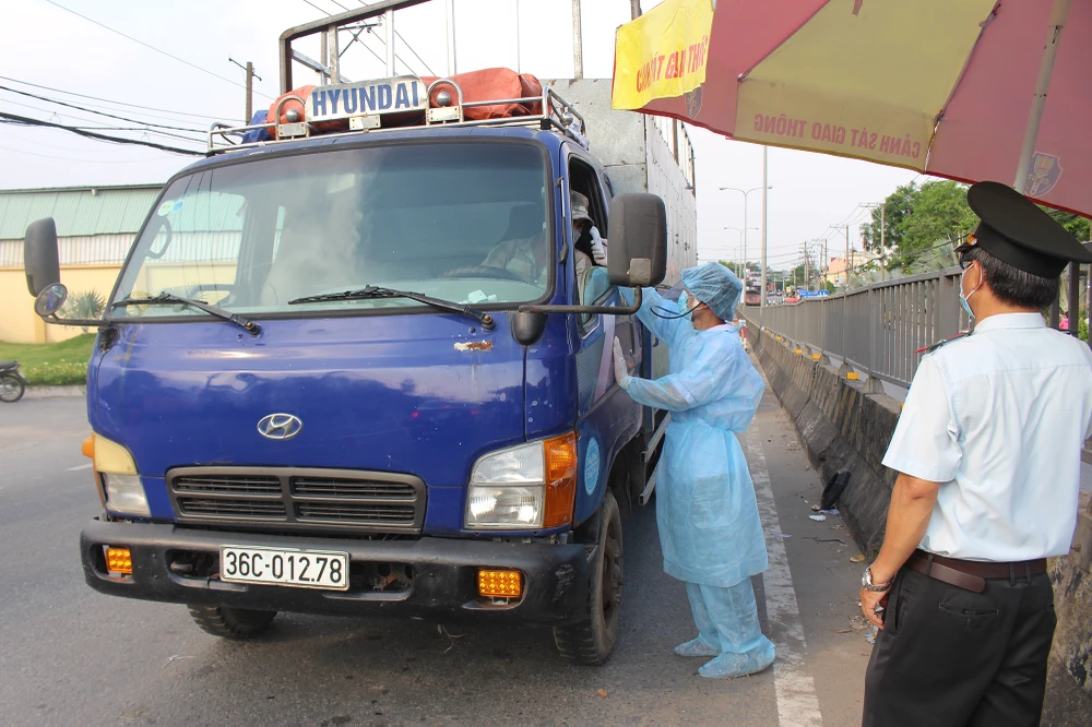 Một số xe tải biển số các địa phương khác được yêu cầu kiểm tra y tế.